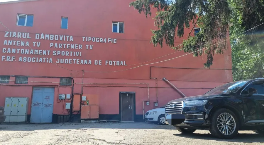 Suntem în fața sediului AJF Dâmbovița, o clădire multifuncțională cățărată la capătul unor scări abrupte pe care scrie, cu verzale țipătoare: „Ziarul Dâmbovița, Tipografie, Antena Tv, Partner tv, Cantonament Sportivi, FRF Asociația Județeană de Fotbal”.