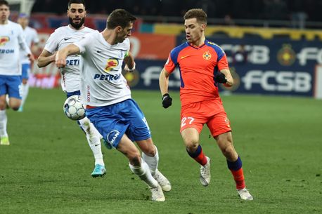 FCSB (echipament rosu) a intalnit Farul Constanta in primul meci din play-off-ul Ligii 1 de fotbal, luni, 14 martie 2022, pe gazonul Arenei Nationale din Bucuresti. EDUARD VINATORU / MEDIAFAX FOTO