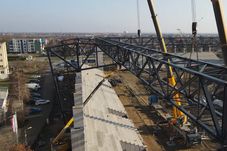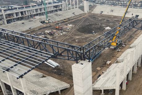 „O grindă metalică a fost ridicată și fixată pe stâlpii de beton de la capetele tribunei. De asemenea au fost realizate legături și cu cele două brațe metalice ridicate în spatele tribunei, pentru ca apoi să fie prinsă și de stâlpii de beton din spatele acesteia. După fixarea acestei grinde, pe ea va fi montat acoperișul.