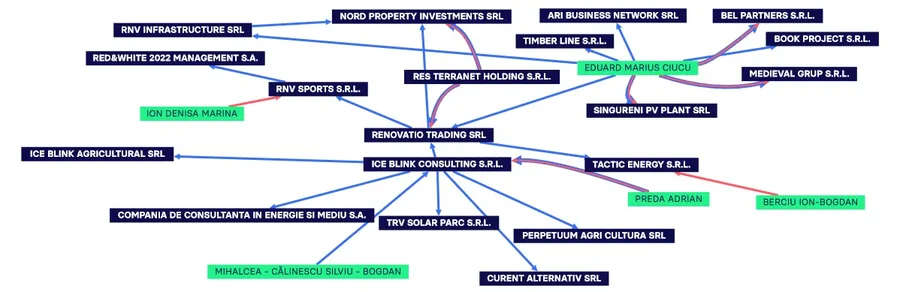 Cât despre Lucian Bădescu, celălalt beneficiar menționat al RNV Sports SRL, un apropiat în afaceri cu Silviu Bogdan Mihalcea Călinescu, unele informațiile prezentate de Comisarul.ro menționează implicarea sa în ICE Blink Consulting. „Cei doi dețin Ice Blink împreună cu un offshore cipriot, RG Renovatio Group Limited. RG a împrumutat periodic SRL-ul pe care îl dețin, cu peste 3 milioane de euro. Bădescu jr. și Călinescu mai sunt implicați în mai multe afaceri cu energie, atât în industria centralelor fotovoltaice, cât și eoliene”, a notat sursa citată, într-un articol publicat în 2016.