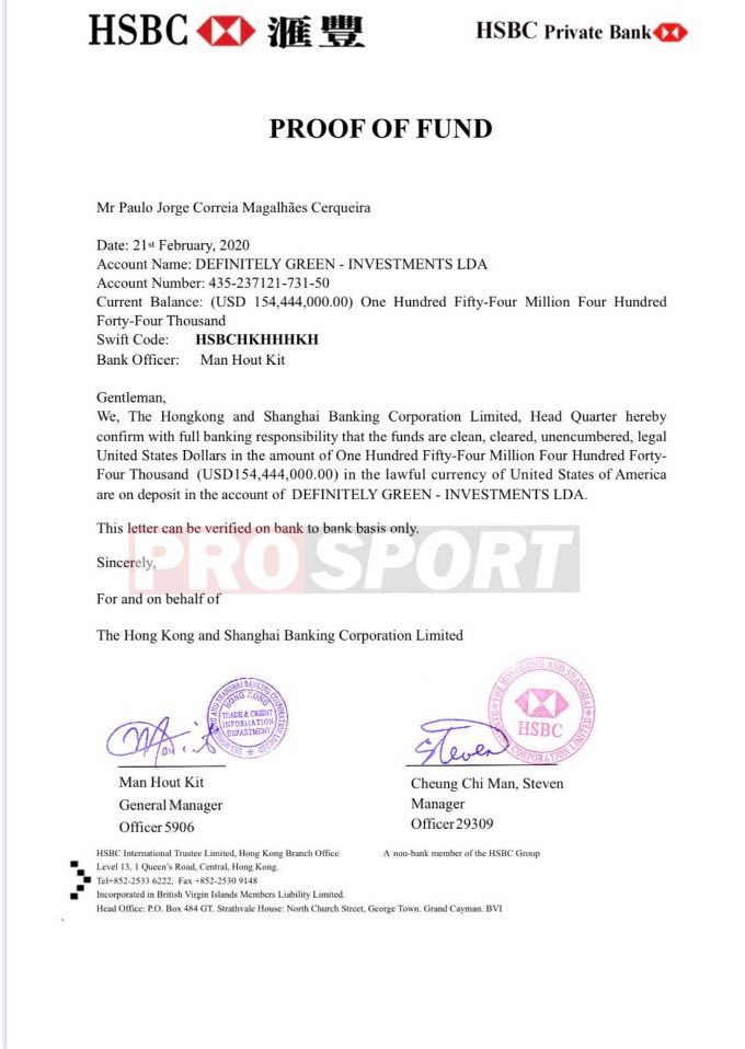 Pentru a proba capacitatea financiară pe care o au, afaceriștii au trimis pe adresa clubului o dovadă scrisă care arată că în conturile firmei pe care o conduc există 154.444.000 milioane de dolari.