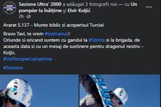 Fanii olteni au ieșit imediat în stradă să-și arate susținerea, iar unul dintre suporteri a mers mai departe și a făcut un nou gest superb. A profitat de ocazie că a ajuns pe cel mai înalte vârf al muntelui Ararat și s-a fotografiat lângă imaginea atacantului din Bosnia, dar și alături de tricolorul românesc. Imaginile au fost postate pe pagina „Sezione Ultra’ 2000”.