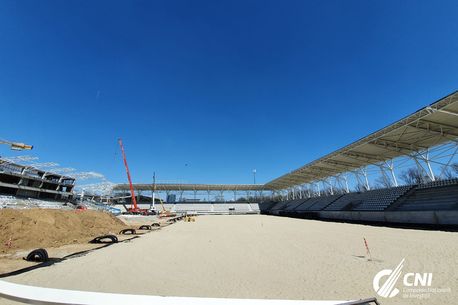 Compania Națională de Investiții a făcut publice, joi, ultimele imagini de la stadionul de lângă Mănăstirea Cașin.