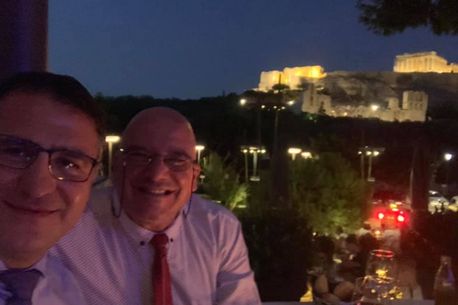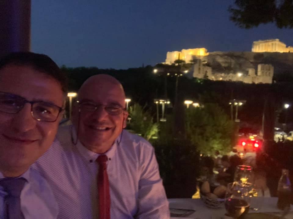 Dacă cu 25 de ani în urmā făceam poze cu Palatul Culturii în spate, în această seară avem imaginea impresionatului Acropolis pe fundal. O tempora…”