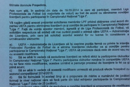 Acesta este actul prin care LPF a înștiințat FRF de dorința cluburilor: