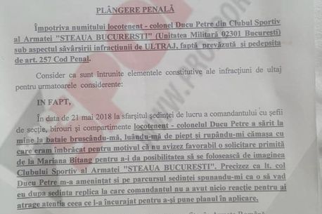 Juristul CSA Steaua a continuat: „În loc să se dispună măsurile disciplinare care se impuneau împotriva lt col Ducu Petre, col Cristian Petrea și Secretarul General Codrin Munteanu i-au luat apărarea lt. Col Ducu Petre aceștia amenințându-mă tot pe mine”.