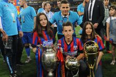 Costel Gâlcă, alături cei trei copii ai săi, adevăratele trofee din viața lui. Fiul său a jucat la Steaua pentru grupa 2000, iar acum e la Eliade