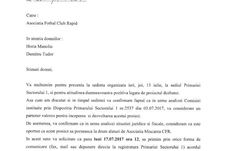 Formularul-adeziune împănat cu greșeli gramaticale pe care Primăria l-a trimis la AFC Rapid și pe care șefii asociației trebuie să-l semneze până luni, la ora 12:00