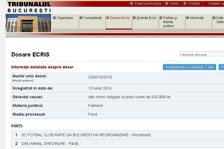 Pe site-ul Ministerului Justiției au fost publicate datele procesului deschis de Rapid contra lui Dinu Gheorghe