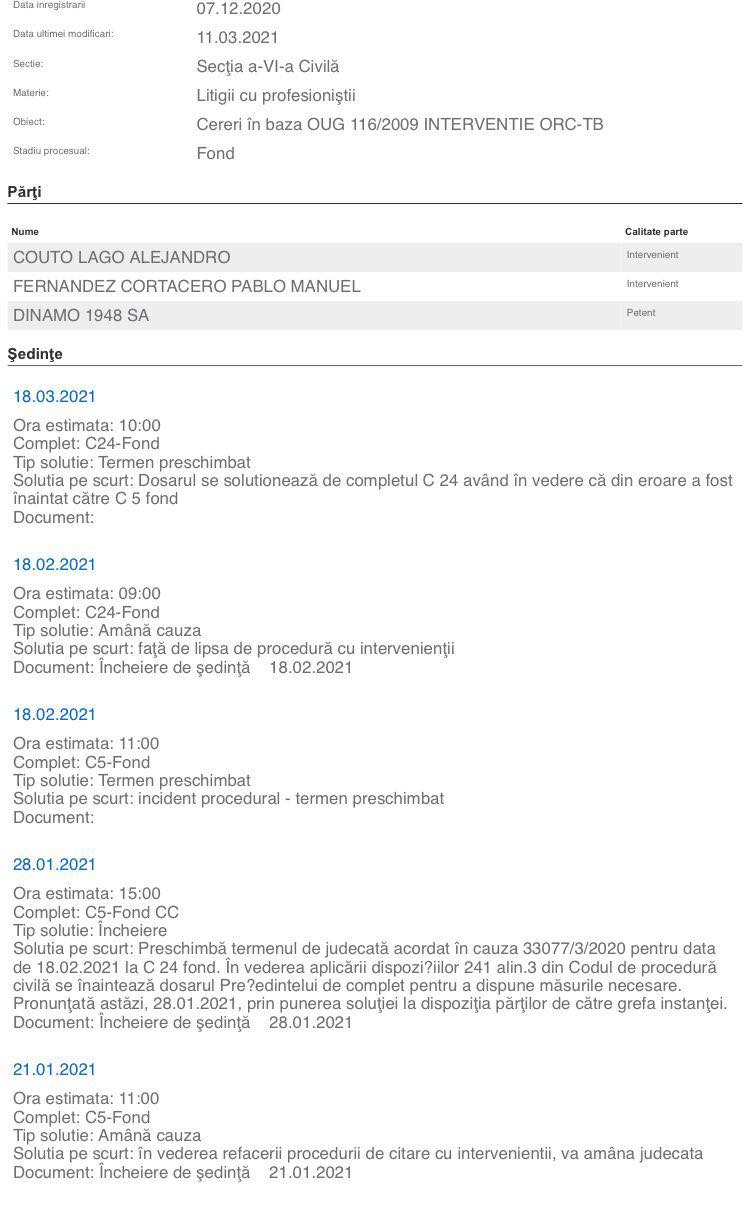 UPDATE, ora 10.20. La ora 11.00 urmează să înceapă procesul lui Pablo Cortacero și Alejandro Lago Couto, iar cei doi trebuie să se prezinte neapărat la Tribunalul București pentru a da explicații. Decizia care va fi luată în cursul zilei de azi poate fi atacată în termen de 15 zile.