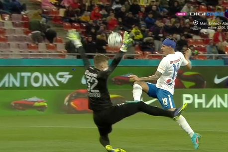 Fază controversată în careul FCSB, după o intrare dură a lui Ștefan Târnovanu asupra unui adversar.