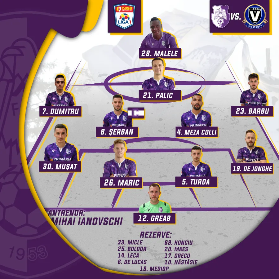 Rezerve: Micle – Boldor, Leca, Grecu, Honciu, Năstăsie, Maes, De Lucas, Mediop