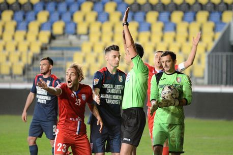 Min. 58. ELIMINARE LA CHINDIA TÂRGOVIȘTE! Paul Iacob vede cartonașul roșu după ce și-a lovit un adversar cu cotul și își lasă echipa în 10.