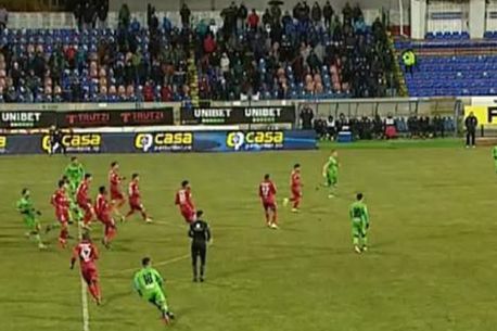 Min. 63: Dican șutează de la 30 de metri, dar portarul Cristiano respinge spectaculos.