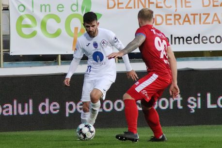 MIN 14. Nițu ratează preluarea, își prelungește balonul în careu, iar portarul Hankic a ieșit și a blocat.