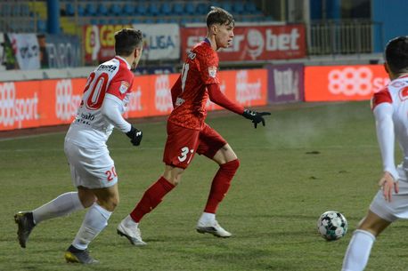 MIN 38. Fază superbă reușită de echipa gazdă. Aosman a driblat frumos și i-a pasat lui Bagaric, singur cu Andrei Vlad. „Messi al portarilor” a respins spectaculos.