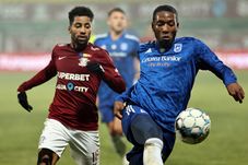 Min. 14. Albu cere penalty după ce șutul său l-a nimerit în mână pe Huyghebaert, ar arbitrul Horațiu Feșnic lasă jocul să continue.