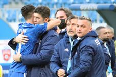 Min. 84: Antrenorul Marius Croitoru protestează în urma unei decizii a arbitrului și vede cartonașul galben.
