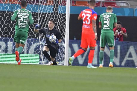 Min. 47: Sorin Mogoșanu iese bine pe centrare și reține de lângă Valentin Gheorghe
