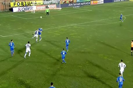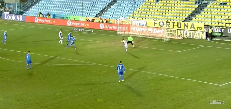 Min34: OCAZIE! Ratare uriașă a oaspeților! Cristi Dumitru reia cu călcâiul, din centrarea lui Malele
