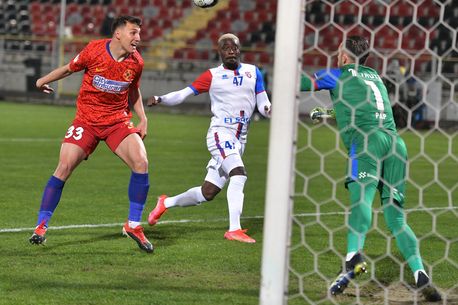Min. 41: OCAZIE MARE FCSB! Tănase bate bine o lovitură liberă de pe partea stângă, dar Pap evită golul.
