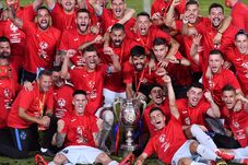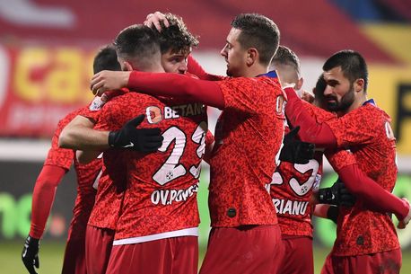 Bucurie stelista cu Ionut Vina, Florinel Coman, Ionut Pantaru si Dennis Man in meciul de fotbal dintre FCSB si Universitatea Craiova, contand pentru Liga 1 Casa Pariurilor, disputat pe Arena Nationala din Bucuresti, duminica 8 martie2020. © FOTO:Stefan Constantin/SPORT PICTURES