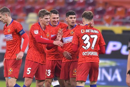 Octavian George Popescu se bucura dupa un gol marcat alaturi de Gabriel Bogdan Simion, Risto Radunovic si Florinel Teodor Coman in meciul de fotbal dintre FCSB si CSM Politehnica Iasi, contand pentru Liga 1 Casa Pariurilor, desfasurat fara spectatori pe Arena Nationala din Bucuresti, sambata 30 ianuarie 2021. © FOTO:Razvan Pasarica/SPORT PICTURES