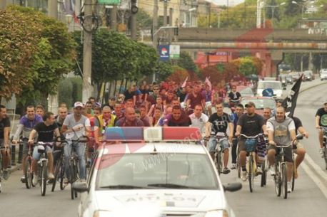 Însoțiți de cinci mașini de poliție, pentru ca totul să se desfășoare regulamentar, peste 200 de oameni au început să pedaleze, cu eșarfa violetă, fularul sau steagul legat de ghidon. Traficul nu a avut foarte mult de suferit, iar cele mai multe claxoane au avut ca însemnătate admirația șoferilor pentru convoiul de bicicliști, care pedalează pentru a vedea un meci de fotbal din campionatul județean. Până la Pădurea Verde, s-au mai strâns circa o sută de bicicliști, în această deplasare de neuitat. Poli a avut în această deplasare aproape 500 de suporteri, cu tot cu cei care s-au deplasat cu mașinile.