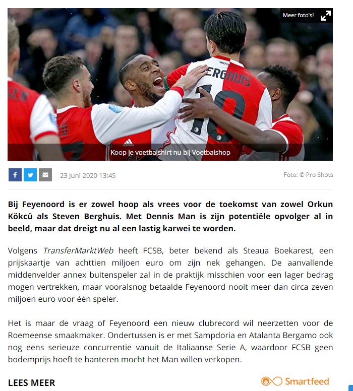 „Întrebarea care se pune acum este dacă Feyenoord dorește să stabilească un nou record de plată pentru club în cazul fotbalistului român. Între timp, cu Sampdoria și Atalanta Bergamo care-l doresc pe jucător, există o concurență serioasă din partea Seriei A. Trebuie ca FCSB să aplice un preț mai scăzut dacă vrea să îl vândă pe Man”, scrie www.soccernews.nl. Până acum Feyenoord n-a plătit niciodată mai mult de 7 milioane de euro pe un jucător pe care l-a transferat.