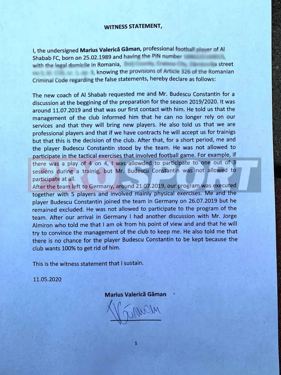 Vă prezentăm mai jos planul lui Budi pentru a câștiga disputa cu Al Shabab, dar și întreaga poveste a conflictului dintre cele două părți. ProSport publică astăzi în exclusivitate dovezile video ale tratamentului neprofesionist suferit de Constantin Budescu