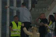 Meme s-a urcat pe gardul ce separă tribunele, iar un steward s-a dus imediat la managerul general al celor de la FCSB și a vrut să-l dea jos, dar Stoica a făcut un gest agresiv – ca și cum ar fi vrut să-l lovească – și a continuat să se manifeste la adresa fanilor.