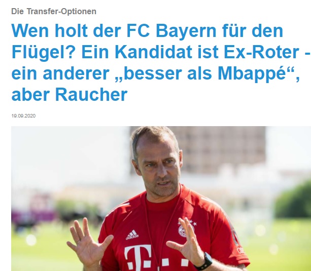 Jurnaliștii de la Kreisbote s-au gândit că ar fi o soluție pentru partea stângă a atacului echipei care a câștigat sezonul trecut tot ce se poate câștiga. Ziariștii s-au gândit că Hans Flick ar avea nevoie de încă o „extremă” în condițiile în care Kinglsey Coman, Serge Gnabry şi Leroy Sane vor fi foarte solicitați. „Antrenorul Hans-Dieter Flick trebuie să gestioneze bine stresul jucătorilor săi şi să le ofere pauze.”, a fost concluzia materialului.