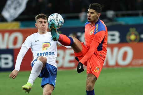 Florinel Coman (S), de la FCSB, suteaza in timpul meciului de fotbal contra echipei Dinamo din etapa a XXIII-a a Ligii 1, disputat pe stadionul Dinamo din Bucuresti, duminica, 30 ianuarie 2022 ALEX NICODIM / MEDIAFAX FOTO