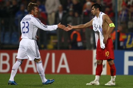 17 octombrie 2006: Nicolae Dică atinge piscul carierei sale de fotbalist. Dă mâna cu David Beckham la sfârșitul unui meci celebru, Steaua – Real Madrid 1-4, în grupele Ligii Campionilor. FOTO: Mediafax