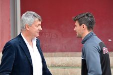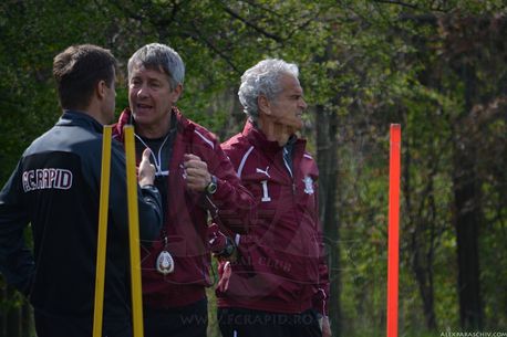 Bergodi a fost bucuros să-l reîntâlnească miercuri, la ProRapid, pe Cristi Săpunaru, fotbalist pe care l-a avut sub comanda sa și în 2007 când a pregătit echipa giuleșteană FOTO: RapidTV