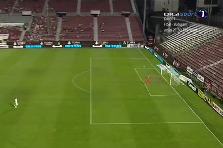 Mihai Voduț (24 de ani) a marcat golul campionatului! Atacantul Viitorului a profitat de o minge primită de la Andrei Mureșan și a șutat a la Gică Hagi, din apropierea cercului de la mijlocul terenului, reușind să-l surprindă pe Jesus Fernandez, care era ieșit dintre buturi.
