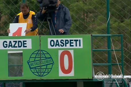 Imediat după ce gazdele au deschis scorul, organizatorii și-au dat seama că au o problemă cu tabela de marcaj electronică, iar Gigel Coman a trecut la munca de jos. Fostul mijlocaș, acum secundul lui Alin Chița la Metaloglobus, a fost surprins de camerele de transmisie ale TelekomSport în timp ce schimba scorul pe tabela de marcaj a arenei.