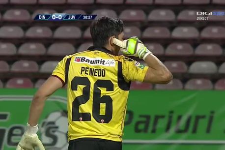 Este al doilea penalty la rând apărat de Penedo, după cel parat în fața lui Budescu, în derby-ul cu FCSB.