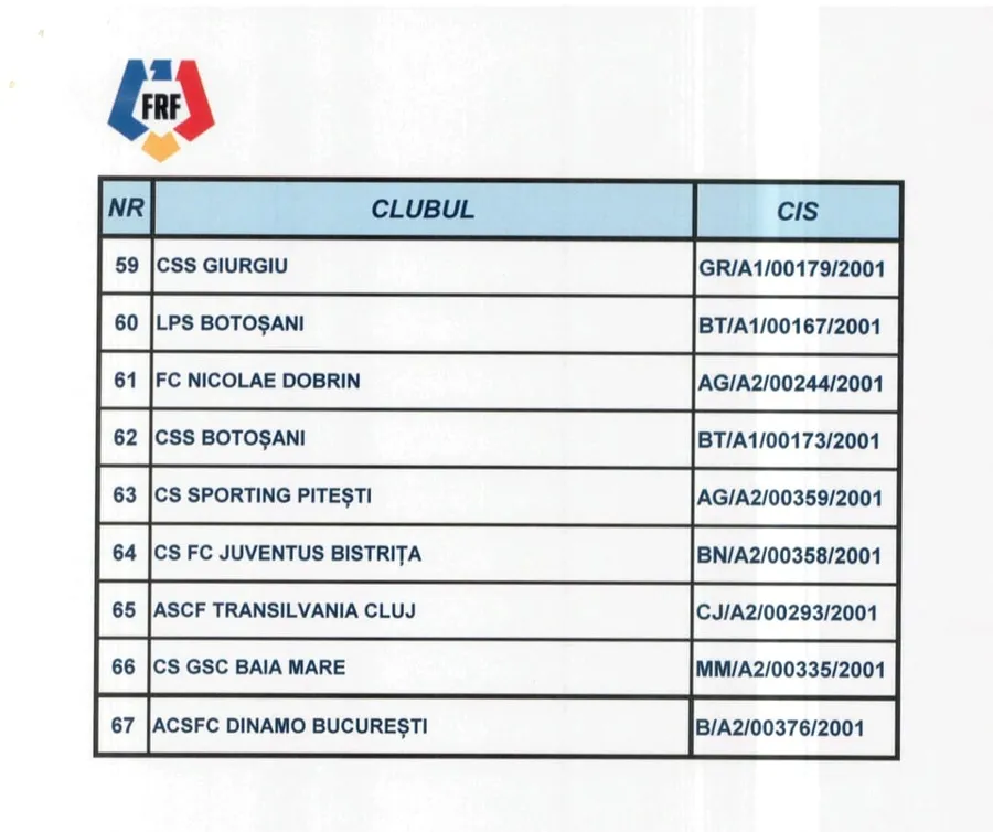 Pe lista dezafiliaților, față de tabelul prezentat la adunările din trecut (VEZI FOTO JOS) a apărut un nume nou față de cele menționate în rândurile de mai sus. Este vorba de Asociația Clubul Sportiv Fotbal Club Dinamo București sau Dinamo- Badea, așa cum este cunoscută în special în limbajul fanilor roș-albi.