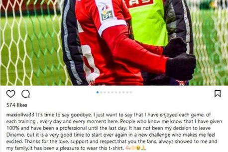 Maxi Oliva, internațional argentinian Under 20, a jucat din vara anului 2016 la Dinamo, până atunci, fundașul stânga evoluând la River Plate, CA Tigre, Estudiantes și San Martin (Argentina) și Aris Limassol (Cipru).