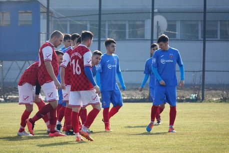 În fața a mai bine de 500 de suporteri, Steaua a început în formula Iancu – Sitaru, Turbatu, Vîlcea, Lolescu, Curt, M. Olaru, Peptănuș, Rasdan, Bâtfoi și Mirea. Prima repriză a fost cea în care echipa lui Lăcătuș și-a demolat adversarul, vârful Bâtfoi trecându-și și el numele pe lista marcatorilor. Remarcatul primelor 45 de minute a fost Cătălin Mirea, autor a patru goluri, iar surpriza s-a numit din nou Gabriel Peptănuș, puști adus de Lăcătuș în prima echipă încă din cantonamentul de la Forban. Vestea proastă a fost dată de accidentarea lui Răsdan, fotbalist adus de Steaua din Liga 1, de la Chiajna. Mijlocașul a ieșit de pe teren la mijlocul primei reprize, accidentat la gambă după o intrare dură a unui adversar.