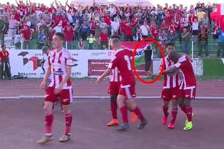 Fanul dinamovist care a dat tonul incidentelor neplăcute de la meciul Sepsi – Dinamo (2-0), ar fi venit din galeria echipei lui Eugen Neagoe. Așa arată imaginile din timpul partidei, camerele video surprinzând momentul când acesta iese din peluză, fură steagul și fuge spre galerie dinamovistă.