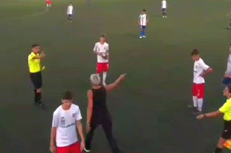 Când vede că arbitrul nu o bagă în seamă și continuă să-și facă treaba pentru care s-a pregătit câțiva ani pe la Școala de Arbitri, femeia dă buzna pe teren. Ba chiar unul dintre jucătorii de la CS FC Dinamo U15 aproape că dă nas în nas cu femeia care a intrat pe gazon chitită să-i aplice o corecție „centralului”.