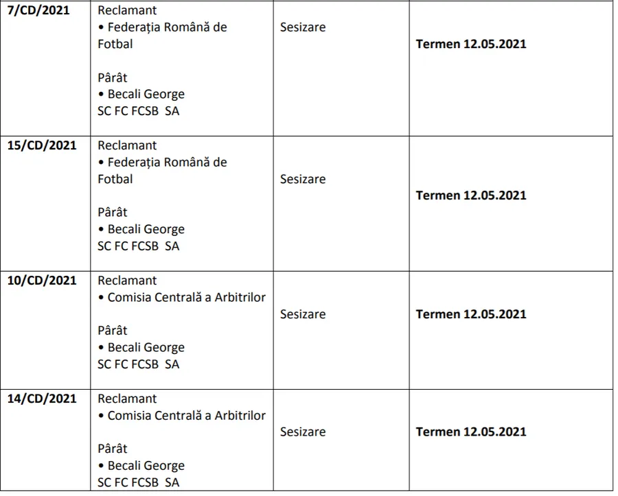 Federația Română de Fotbal și CCA s–au sesizat împotriva clubului FCSB și a lui Gigi Becali și au depus plângeri împotriva omului de afaceri după reacțiile nervoase ale acestuia din ultima perioadă. O decizie în cele patru dosare ar urma să fie luate pe 12 mai, atunci când are loc termenul.