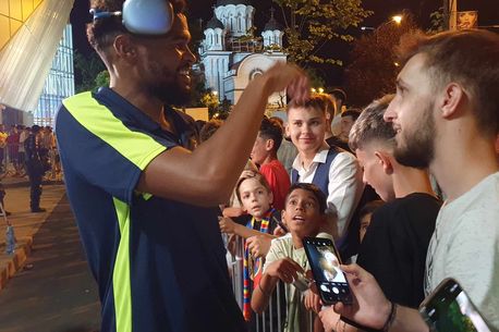 Malcom Edjouma și Joyskim Dawa au stat și ei câteva minute alături de fanii entuziasmați după succesul în fața rivalei din „Ștefan cel Mare”.