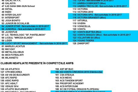 La ultima Adunare Generală a AMFB, în care a fost votat noul președinte, Marian Lumânare, pe lista membrilor afiliați cu drept de vot s-au aflat 125 de cluburi. Dintre acestea, conform informațiilor ProSport, 13 sunt din Județul Ilfov și alte 3 din Giurgiu. 21 de echipe nu au activitate cel puțin în acest sezon – unele, chiar de câțiva ani. Pe de altă parte, sursele ProSport spun că la competiții participă cel puțin 57 care nu sunt afiliate (și, teoretic, n-ar avea dreptul să intre în campionat), unele neavând nici măcar toate actele necesare.