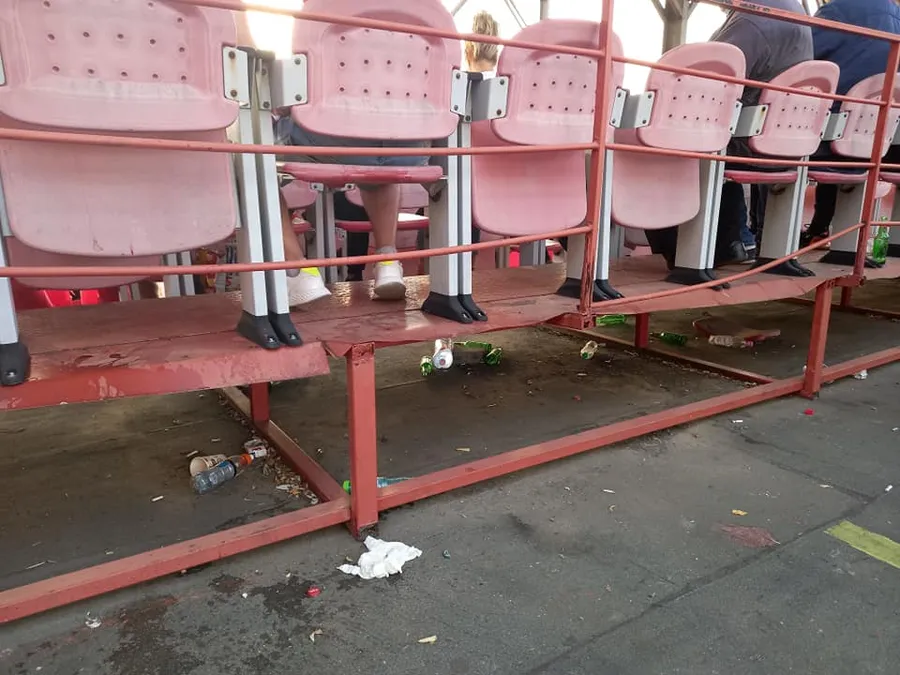Sticlele de suc și de bere nu mai sunt strânse de nimeni (foto), iar arena din centrul Capitalei a a ajuns o veritabilă sursă de infecție pentru spectatorii prezenți.