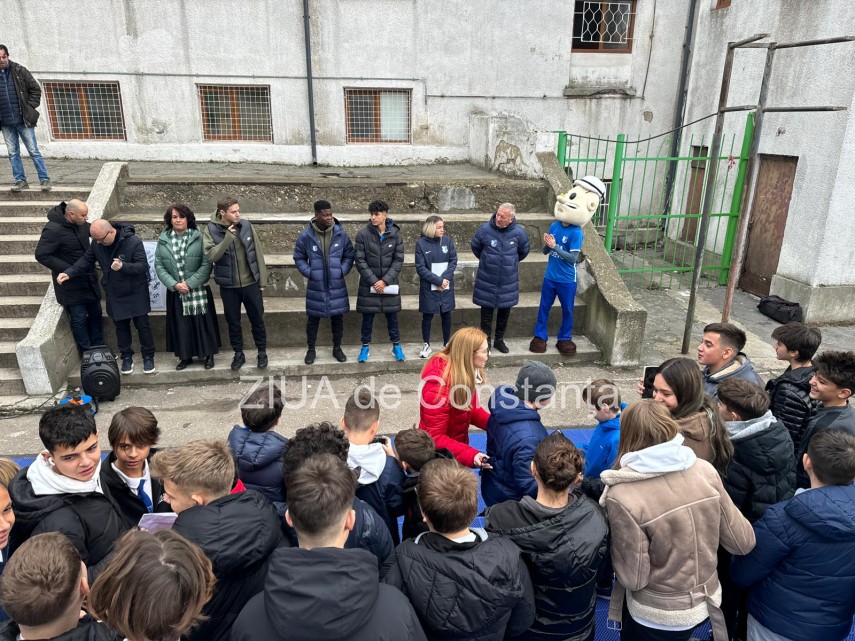 Încrederea avută de Gică Hagi și Farul în Căldăraru e întărită de această acțiune în care puștiul fusese inclus în programul „Învățăm să fim campioni. Școala, primul pas spre performanță“, pe care campioana României îl derulează în parteneriat cu Inspectoratul Școlar Județean Constanța. Iată-l pe Căldăraru (în dreapta lui Louis Munteanu și Kiki) la eveniment: