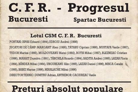 Afișul partidei CFR – Progresul Spartac, de sâmbătă, pare teleportat în timp din presa anilor ’30