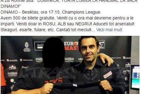 Cel mai titrat jucător de snooker din istorie, Ronnie O’Sullivan, a postat pe facebook un filmuleț în care aleargă pe o bandă la sala de fitness, dar tricoul pe care-l poartă e cu adevărat special. Britanicul a fost surprins cu un tricou negru, pe care inscripționat un mesaj. Surpriză! Mesajul de pe tricoul lui O’Sullivan era: „Doar Dinamo București”.